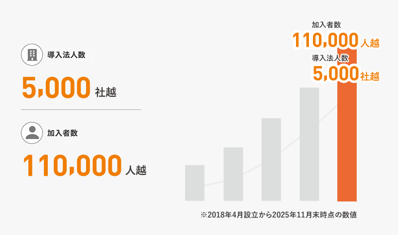 はぐくみ企業年金は2018年4月に設立されましたが、設立以来、導入法人数及び加入者数ともに右肩上がりに大きく増加しています。