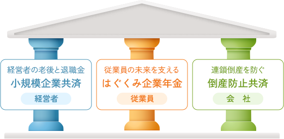 この3つの制度は、それぞれの立場(経営者・会社・従業員)を守るバランスの取れた仕組みです。」