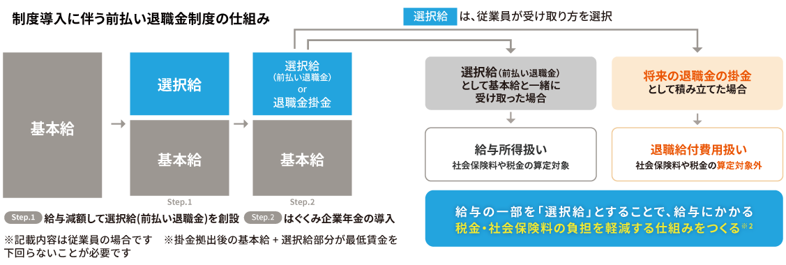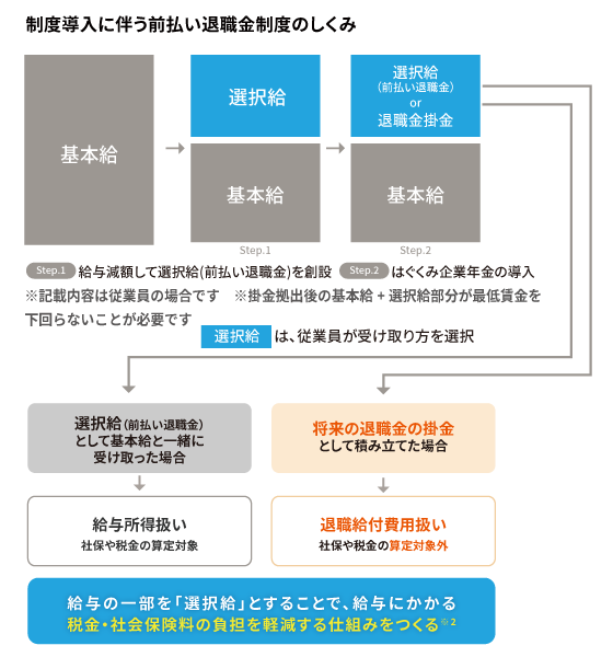 はぐくみ企業年金は、「前払い退職金制度(選択制)」と併せて導入・整備することで、