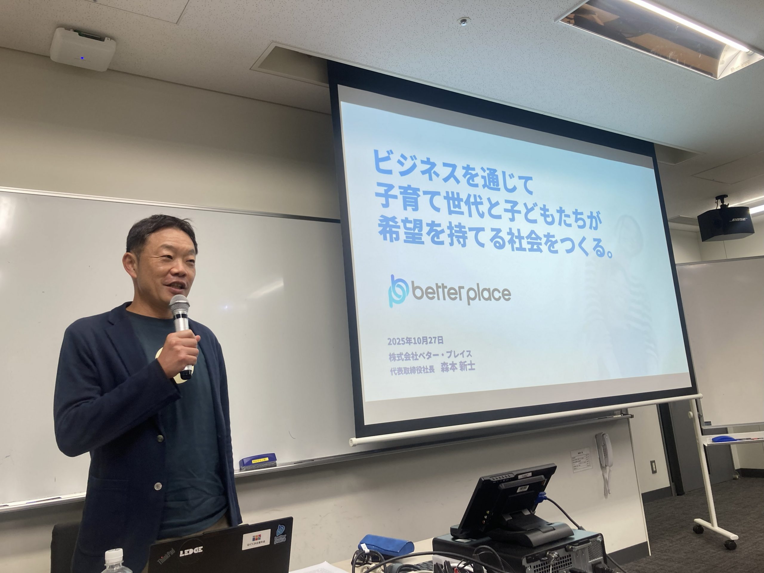 2025年10月27日(月)に開催された青山ビジネススクール(ABS)ソーシャルアントレプレナーシップ講義に、当社代表取締役社長 森本がゲストスピーカーとして登壇しました。