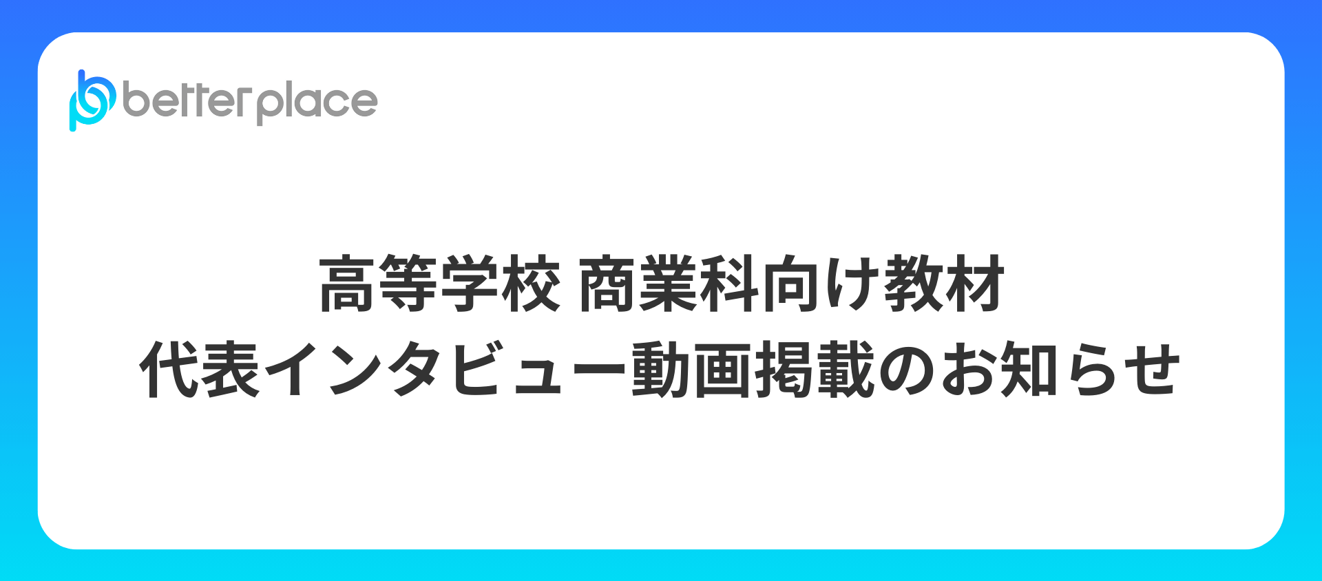 高等学校 商業科向け教材「事例探究ワークブック ビジネス編 新訂版」にベター・プレイス 代表取締役社長 森本のインタビュー動画が掲載
