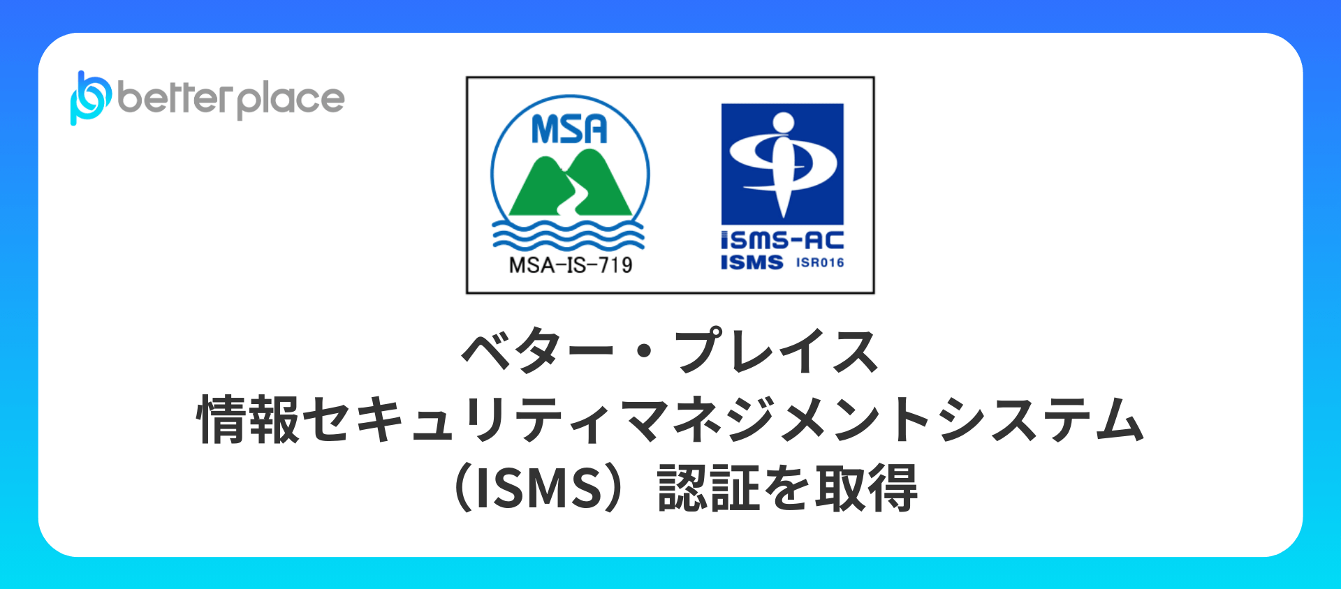 ベター・プレイス、情報セキュリティマネジメントシステム(ISMS)認証を取得