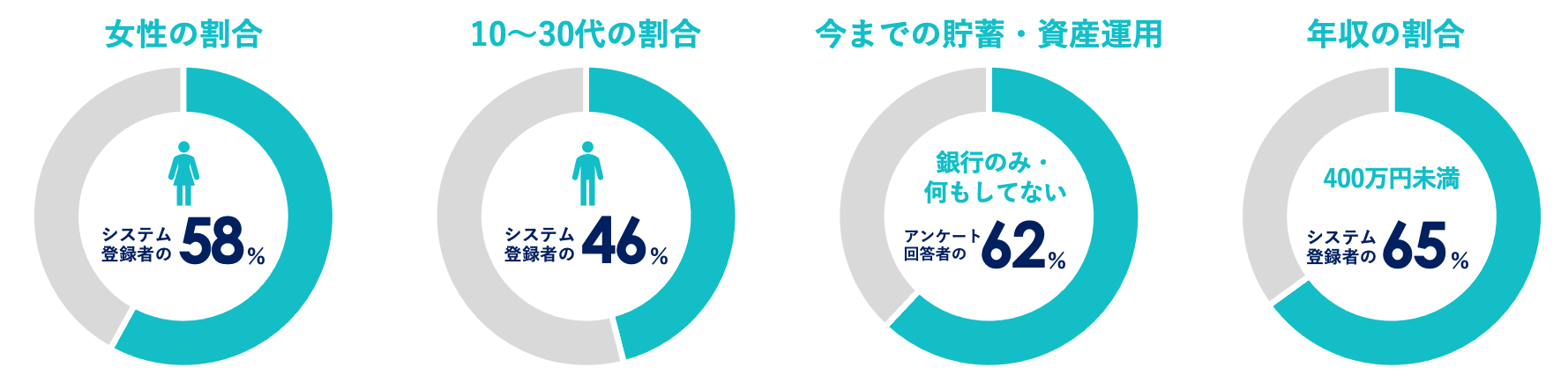 加入者の半数以上が女性、加入者の約半数が10~30代の若い世代。「投資初心者」が6割超、年収400万円未満の方が6割超。無理なく始められる資産形成手段を提供。