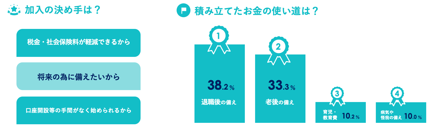 ※加入の決め手、積み立てたお金の使い道:2023年10月~2024年9月実施説明会にて、ベター・プレイスが行ったアンケートより