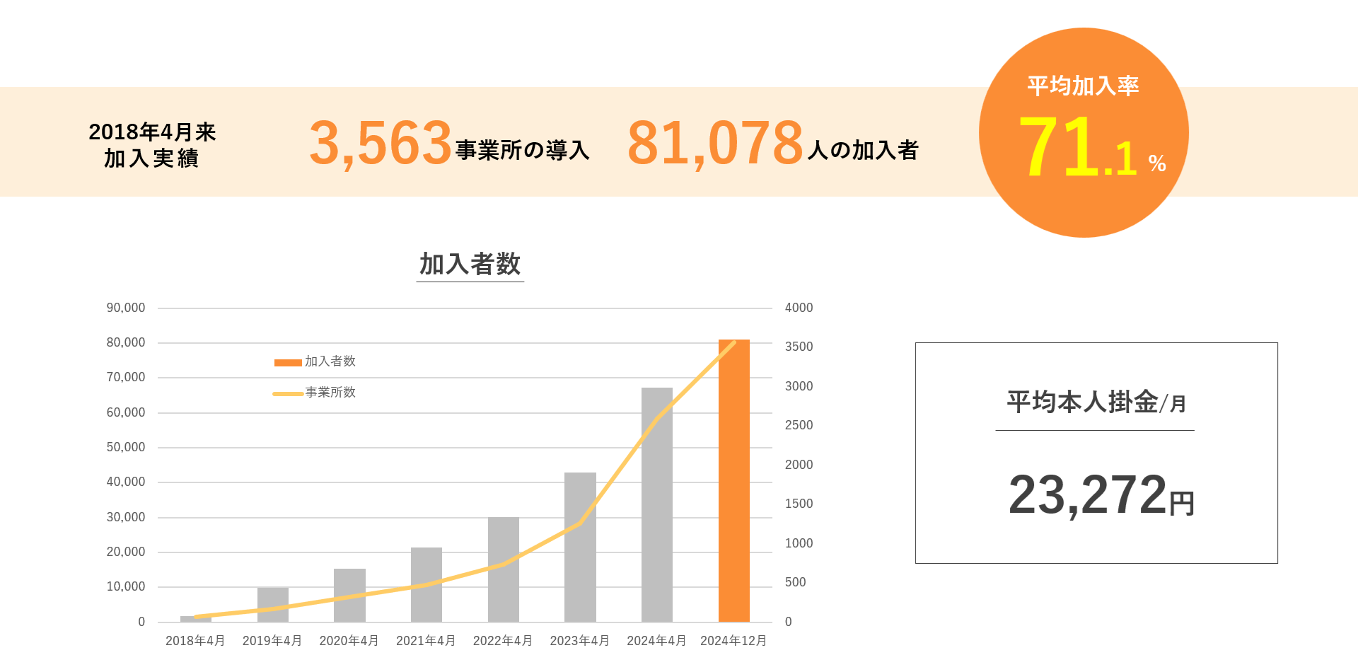 加入者数:実加入者/対象者数(被保険者数のうち加入できると判断された人数)