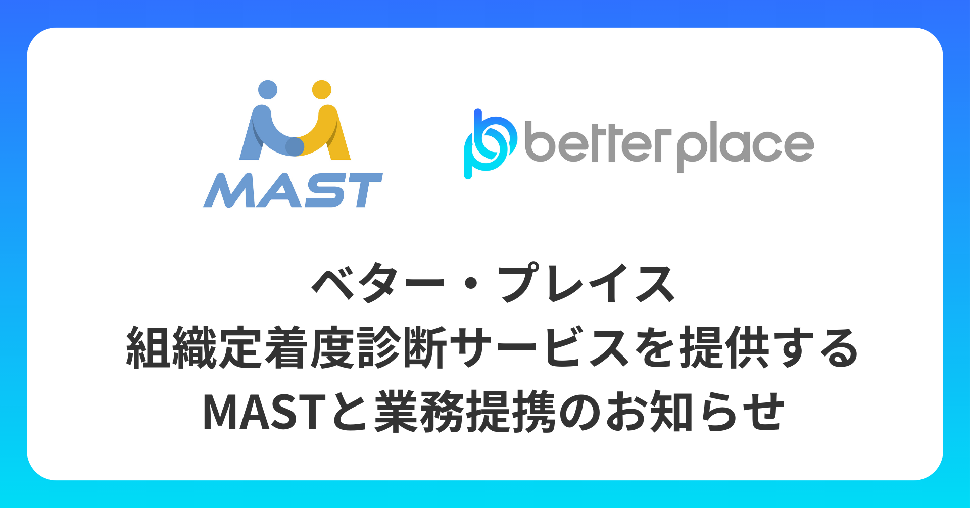 ベター・プレイス、組織定着度診断サービスを提供するMASTと業務提携