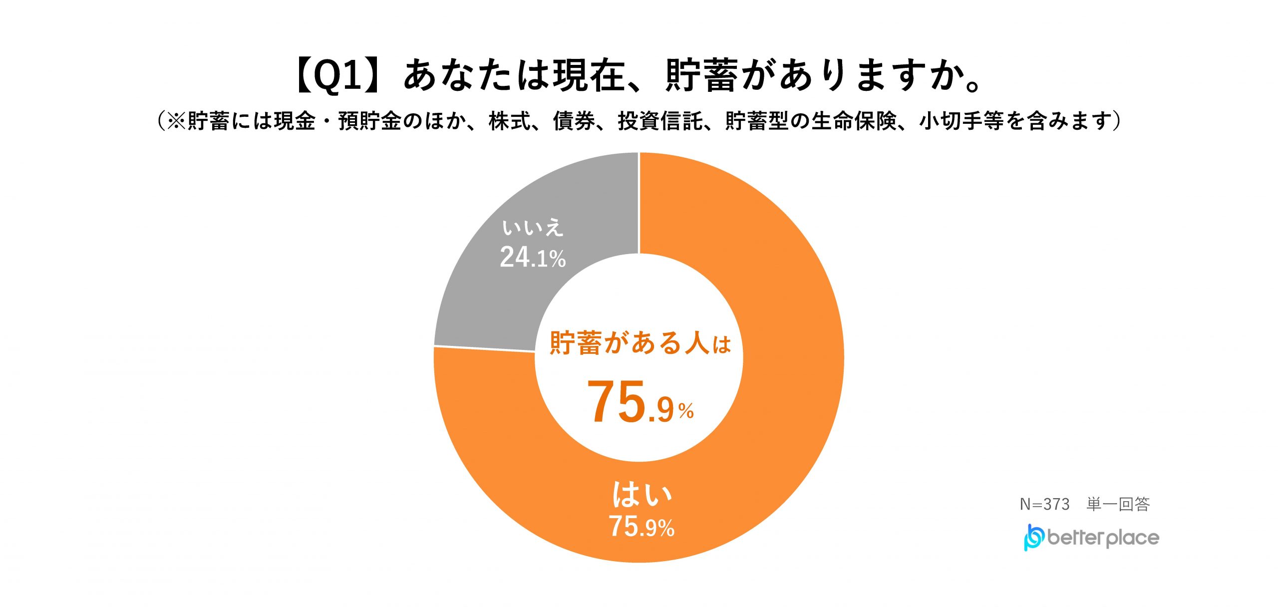 「あなたは現在、貯蓄がありますか。」と質問したところ、「はい」と答えた人は75.9%と、4人に3人は貯蓄があることがわかりました。