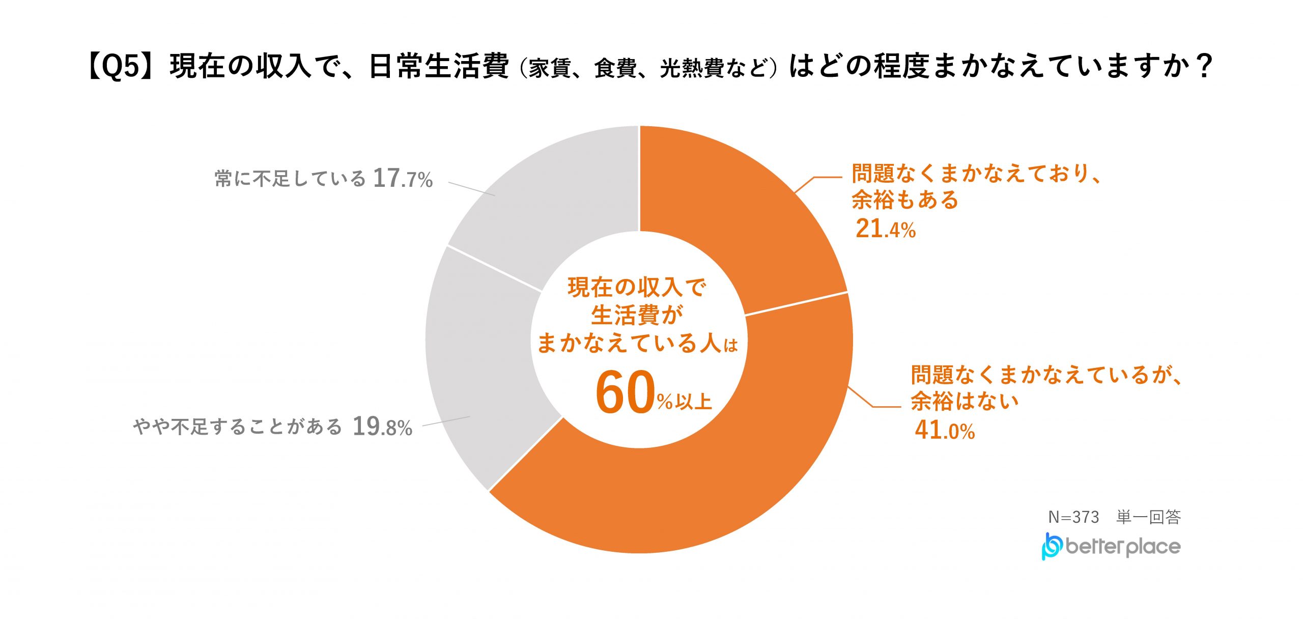 現在の収入で日常生活費をまかなえているが、余裕はないと回答した人が41.0%