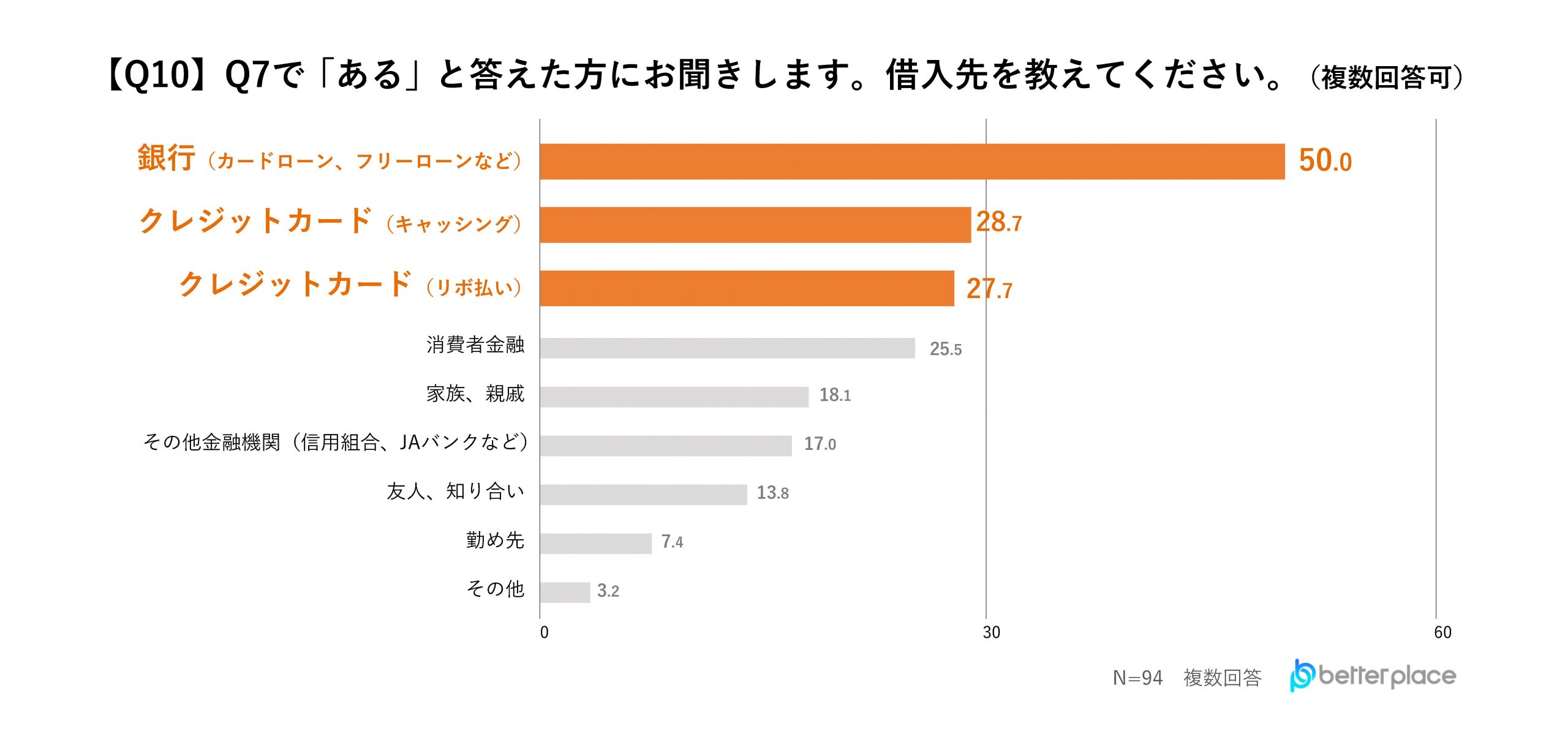借入先は、銀行(カードローン、フリーローンなど)が半数以上