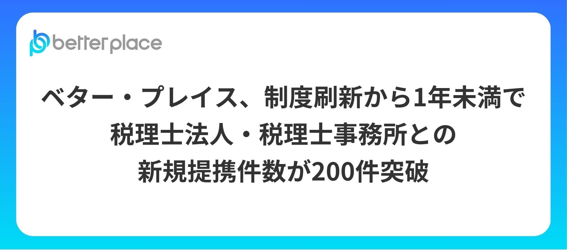 ベター・プレイス、制度刷新から1年未満で税理士法人・税理士事務所との新規提携件数が200件を突破