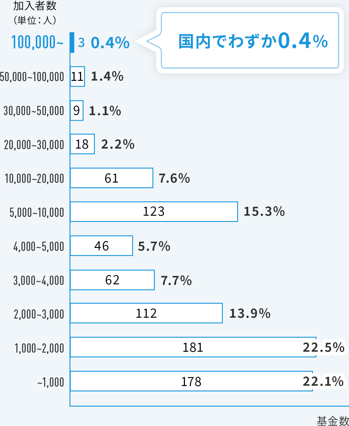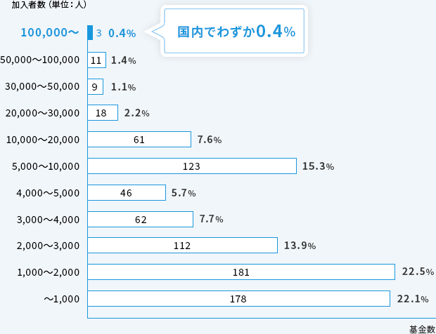 ※「企業年金実態調査結果(2024年度概要版)」加入者規模別の分布状況 より